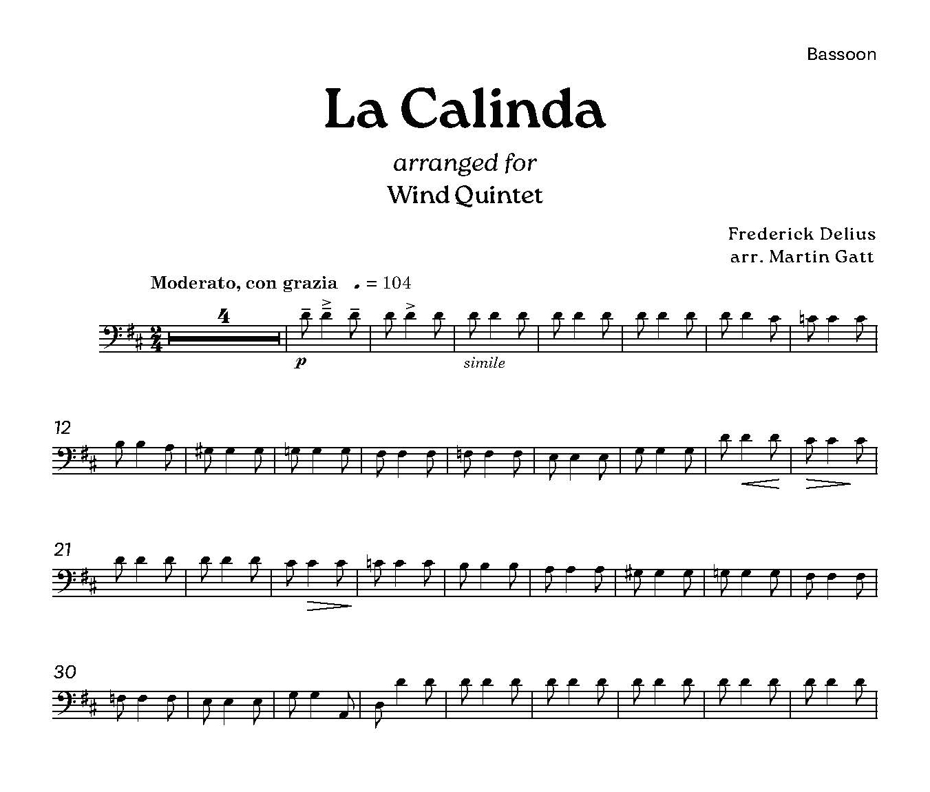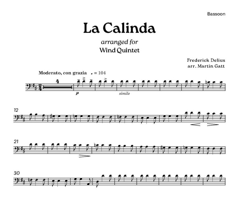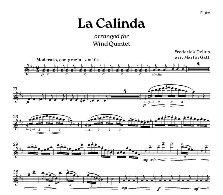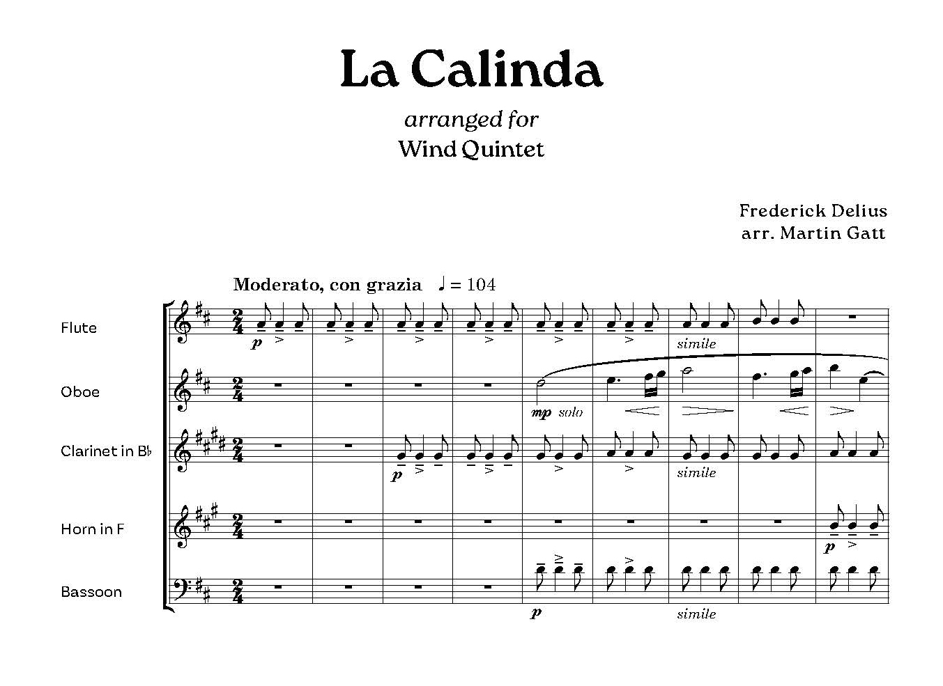 This arrangement for wind quintet (Flute, Oboe, Clarinet in Bb, Horn in F and Bassoon) by Martin Gatt was initially published by Phylloscopus Publications in 2017.
