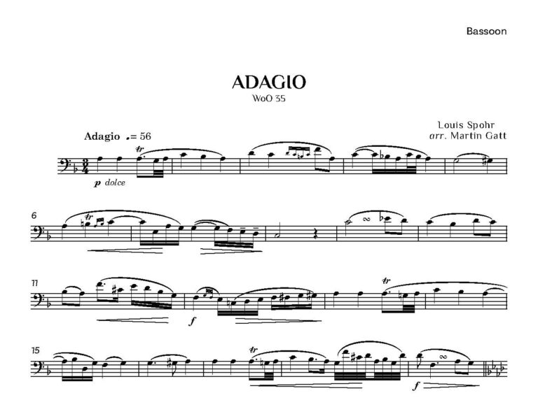 The composer, violinist and educator Louis Spohr (1784-1859) wrote a virtuoso adagio for his first wife, a virtuoso harpist and pianist. He later rearranged it for bassoon and piano.