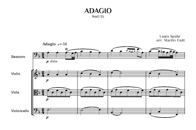 This arrangement by the rednowned bassoonist Martin Gatt is for solo bassoon, accompanied by violin, viola and cello.