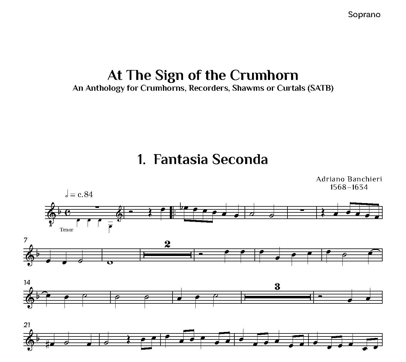 11 short quartets for SATB Recorders, Crumhorns, Shawms or Curtals.