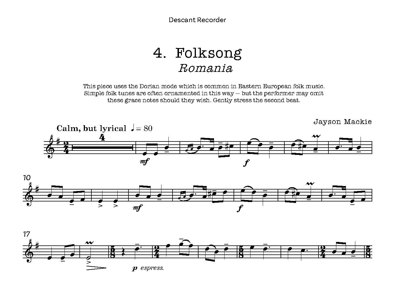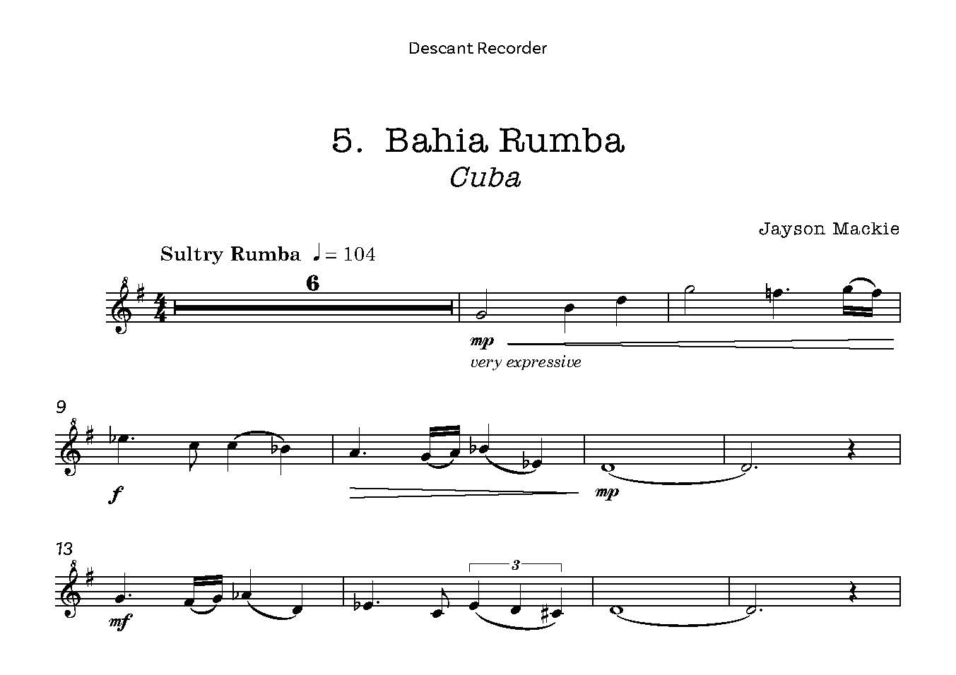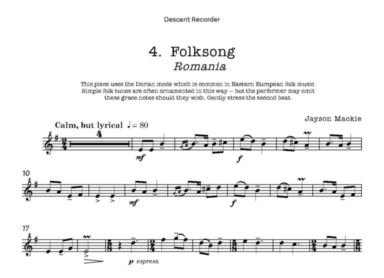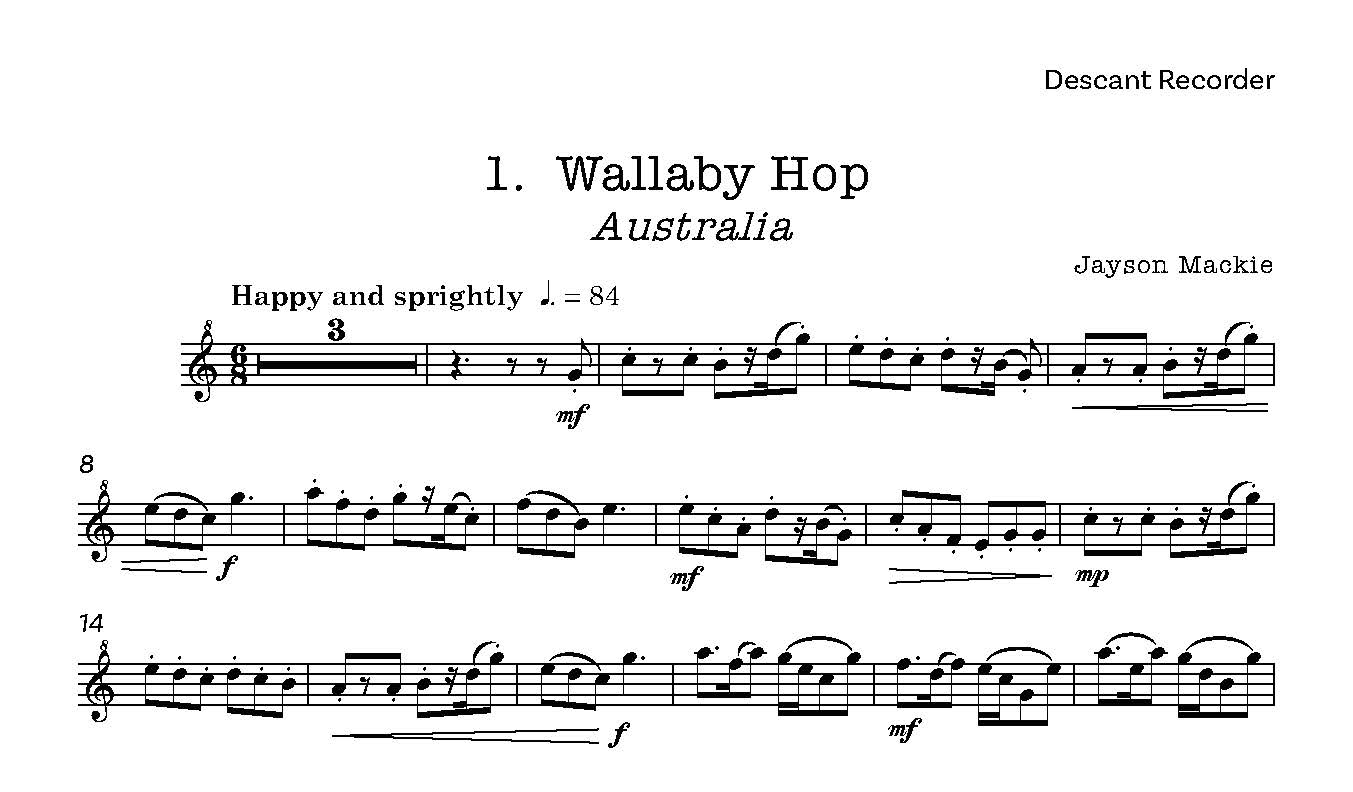 A varied collection of six pieces for Descant Recorder and Piano, each from a different country.