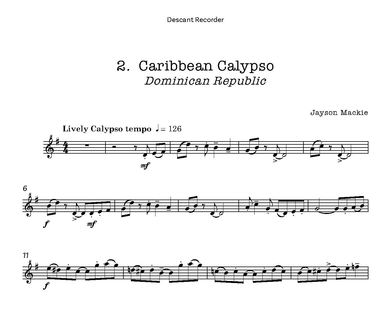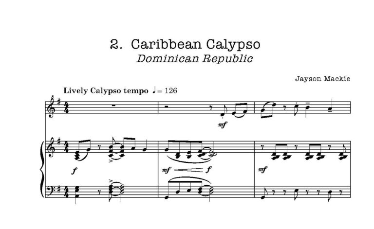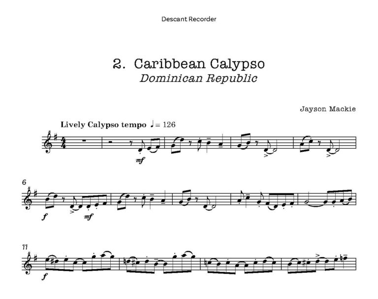 The ‘Dominican Blues’ is sure to become a standard calypso for young players and is possibly the easiest of the pieces.