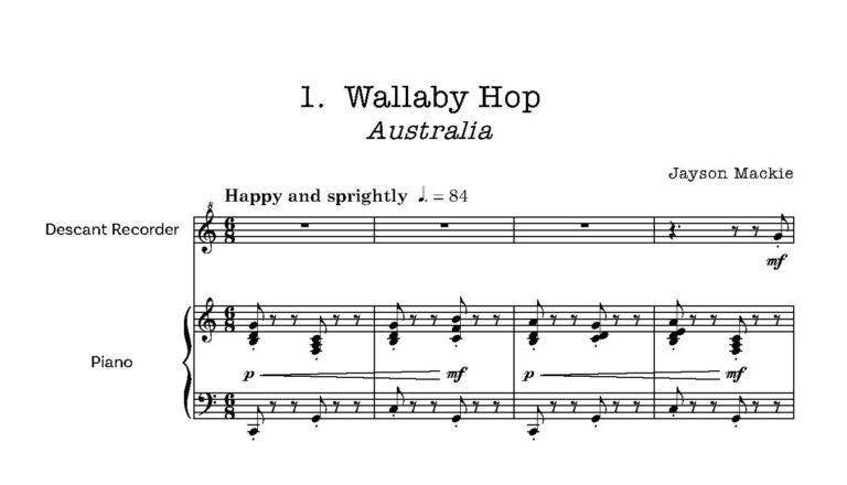 There is ‘Wallaby Hop’ – difficult to read at first, but brilliant once one or two rhythmic patterns have been understood and the key change(to three flats) in the middle section carefully observed.