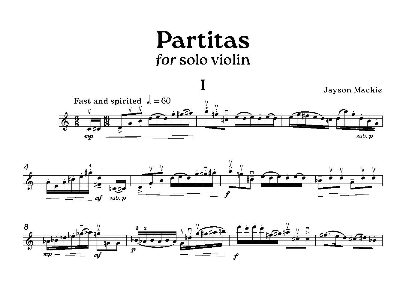 The Partitas for Solo Violin were inspired by the Partitas and Sonatas for Violin by J.S. Bach and the Fantasias for Flute by Telemann.