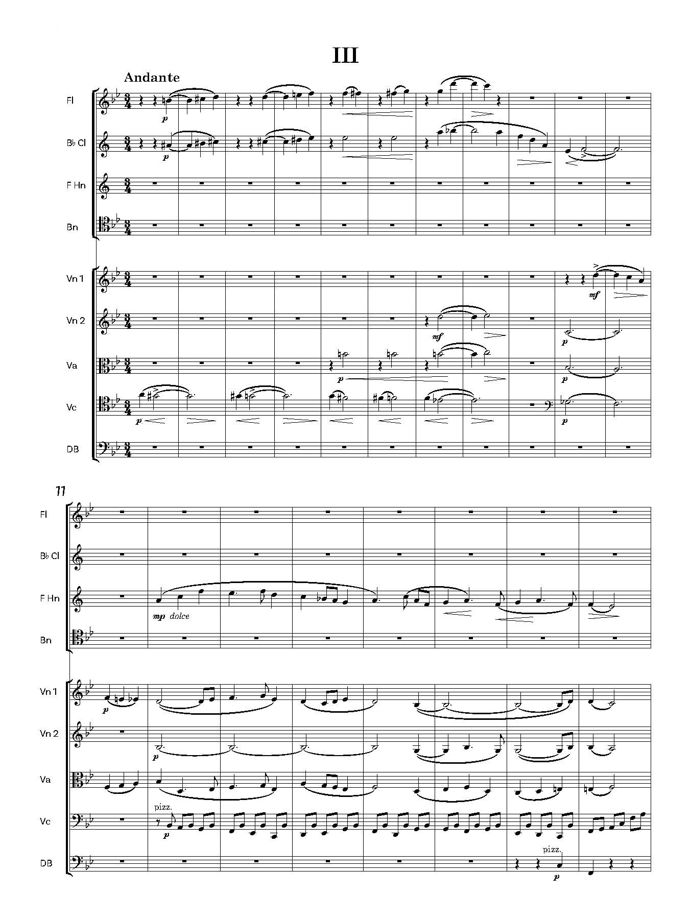 Fl, Bflat cl, hn in F & bn, 2vns, va, vc, db.