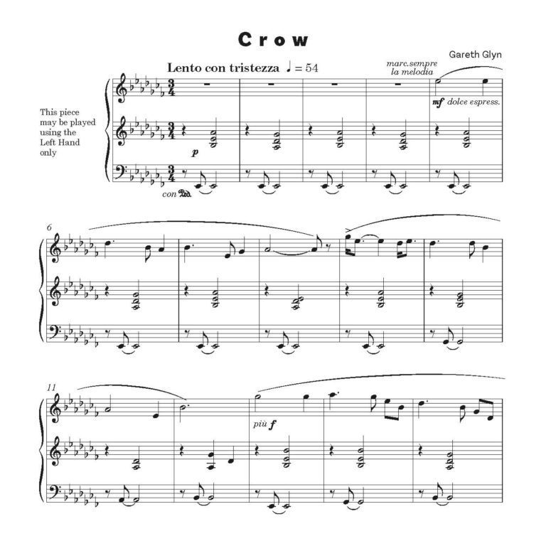 Crow uses only the black Notes.Unusually, this piece may be played using the Left Hand only.