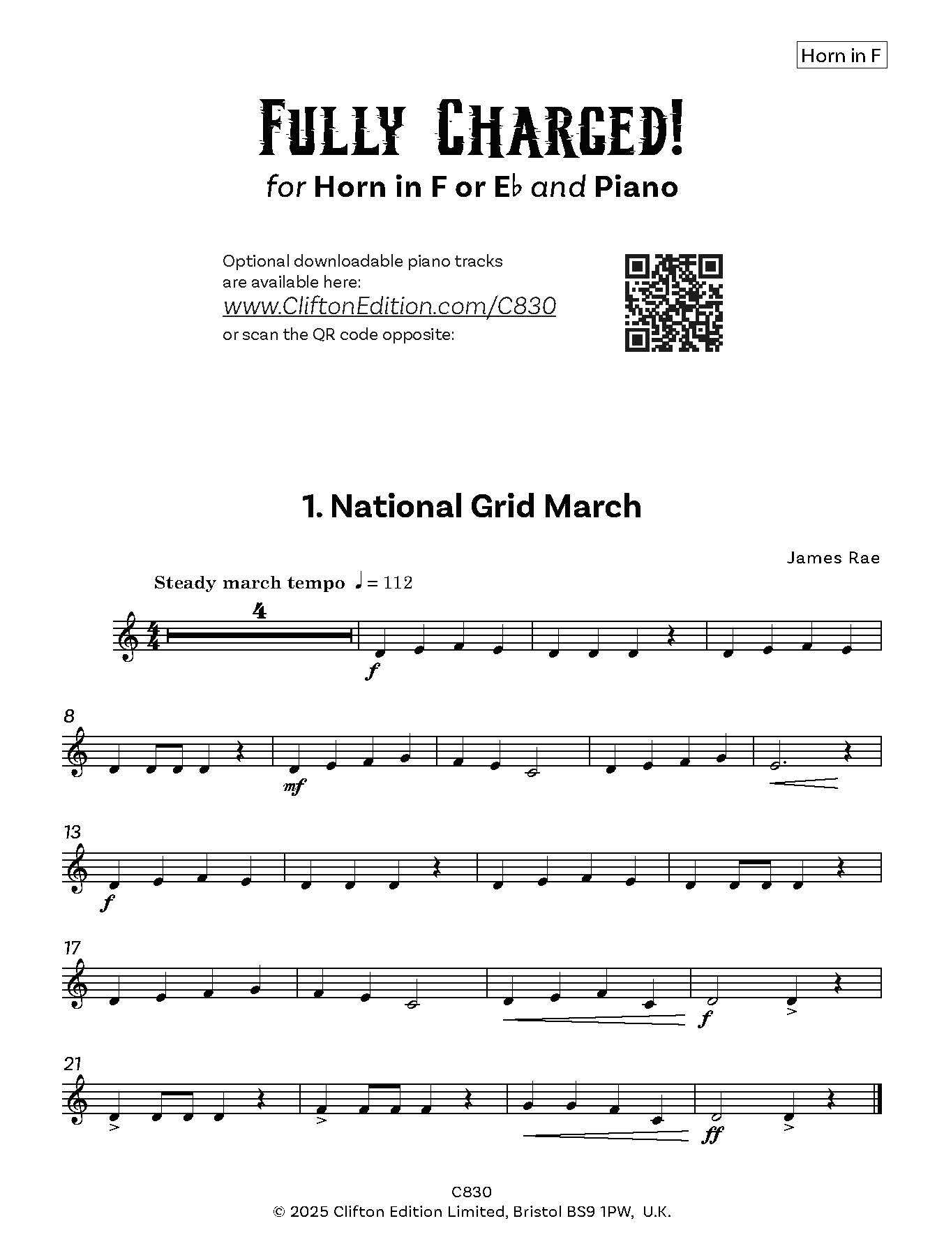 Fully Charged! presents a series of 10 easy ‘high-voltage’ pieces for brass instruments with piano accompaniment or downloadable piano backing tracks.