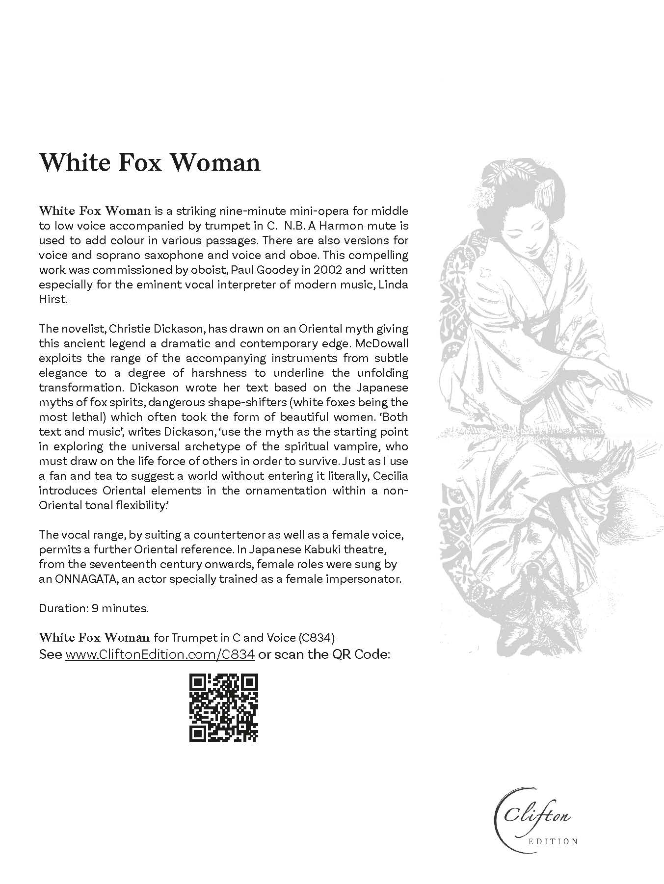 White Fox Woman is also available for Oboe or Soprano Saxophone and Voice (C765).
