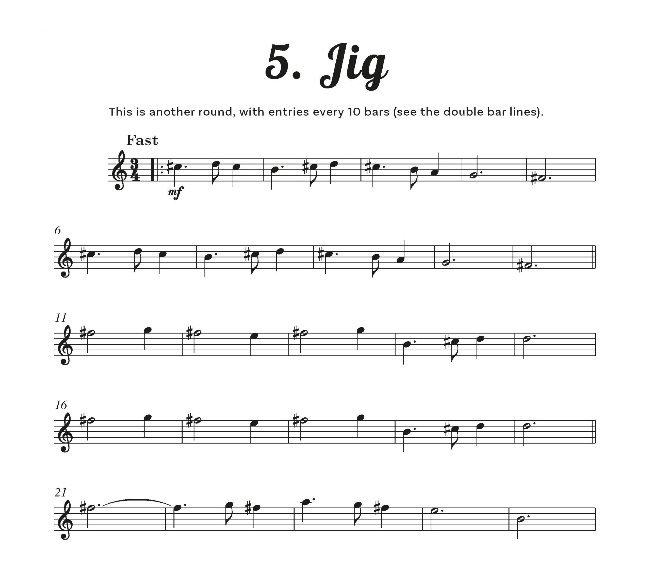 For each of the five short pieces, parts 2, 3 and 4 are optional. However, two, three, four or more players can be added with a proportional thickening of texture and interest. The bass version has an additional fifth part which should be played as a priority in the presence of other treble instruments. Parts are notated NOT in order of difficulty, but of musical importance. Part two, while sometimes being the easiest to play, holds the key harmony notes, while the fourth part occasionally provides a descant.