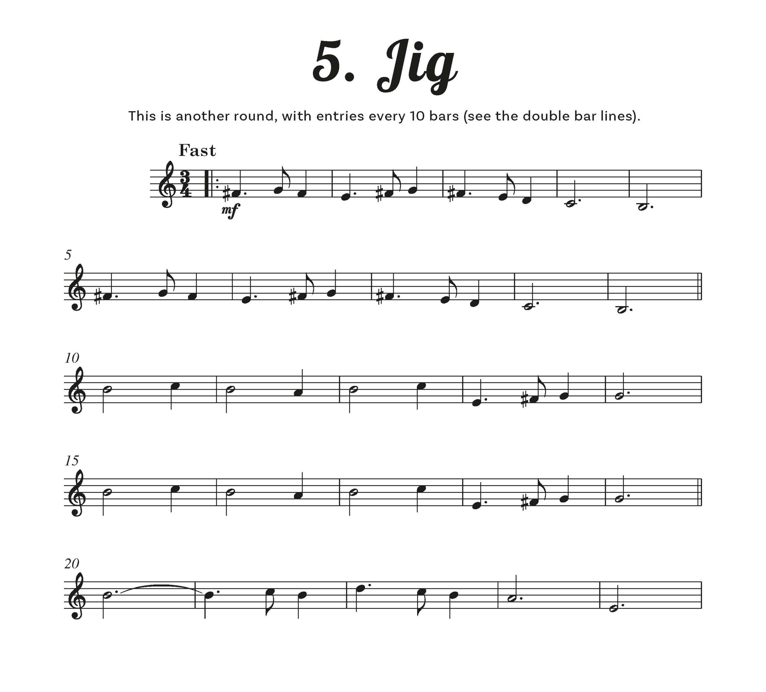 For each of the five short pieces, parts 2, 3 and 4 are optional. However, two, three, four or more players can be added with a proportional thickening of texture and interest. The bass version has an additional fifth part which should be played as a priority in the presence of other treble instruments. Parts are notated NOT in order of difficulty, but of musical importance. Part two, while sometimes being the easiest to play, holds the key harmony notes, while the fourth part occasionally provides a descant.