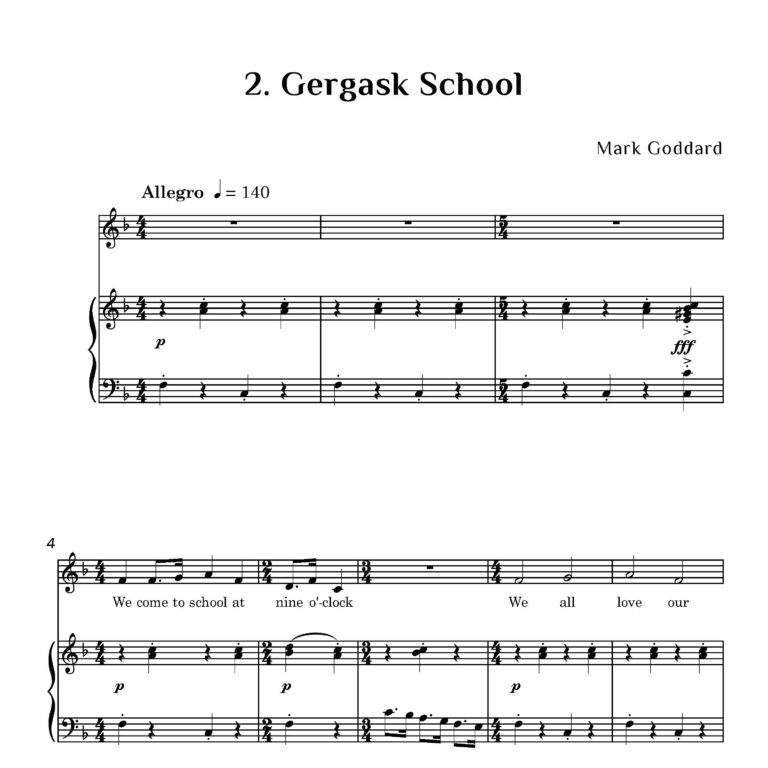 Music by Mark Goddard, for Mrs Dickson and the children of Gergask School, Laggan Bridge.